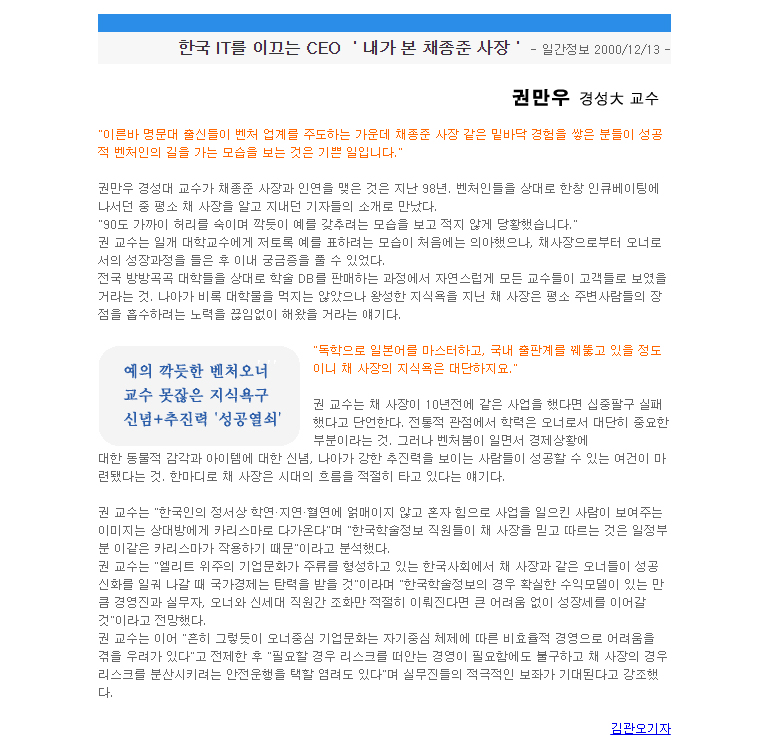 한국 IT를 이끄는 CEO '내가 본 채종준 사장'