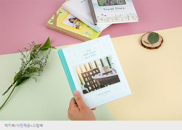 또 쿠션하드커버를 표지로 구성, 부드러운 느낌을 준다. 디자인의 경우 일상, 여행, 커플, 키즈 가운데 고를 수 있다. 내지 또한 이 4가지 주제에 적합한 테마를 갖췄다. 일상을 기록하는 '데일리노트', 여행을 콘셉트로 담은 '트래블 다이어리', 커플을 위한 '파스텔 러브', 아이의 성장을 담을 수 있는 '해피키즈'로 구성됐다.