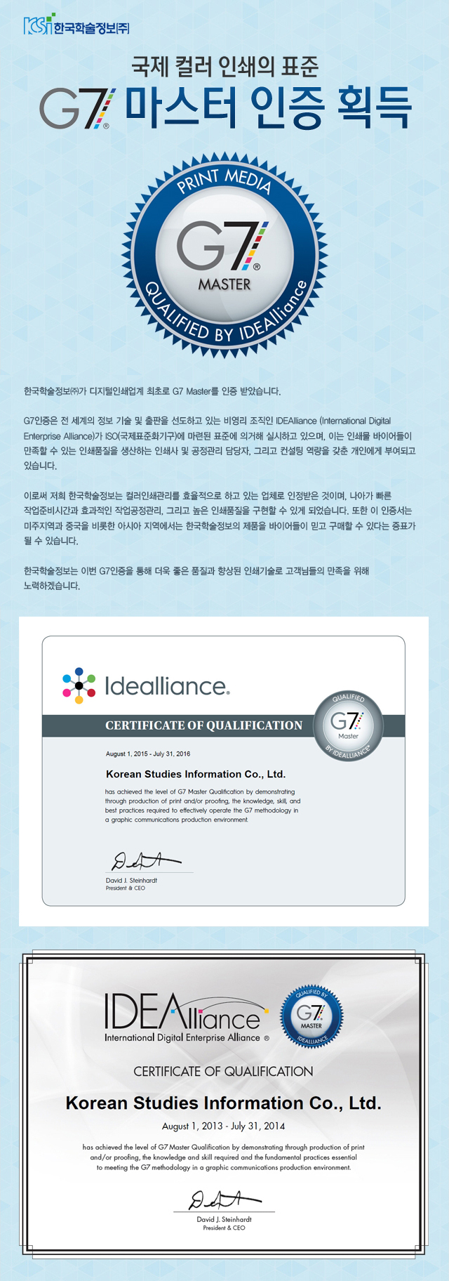 국제 컬러 인쇄의 표준 G7 마스터 인증 획득