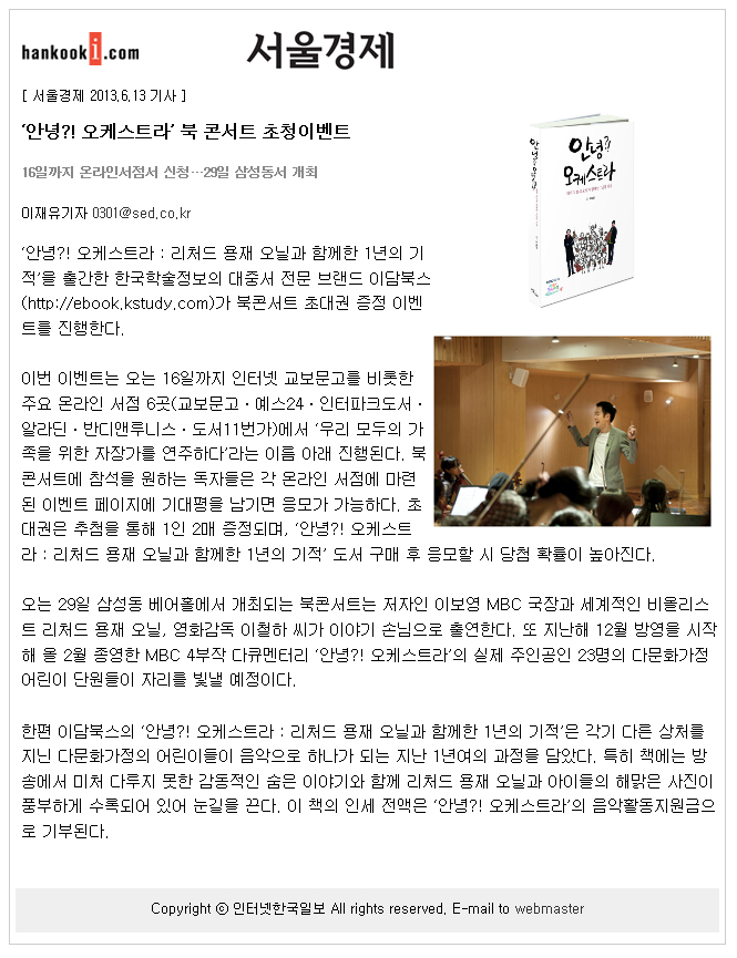 '안녕?! 오케스트라' 북 콘서트 초청이벤트 개최