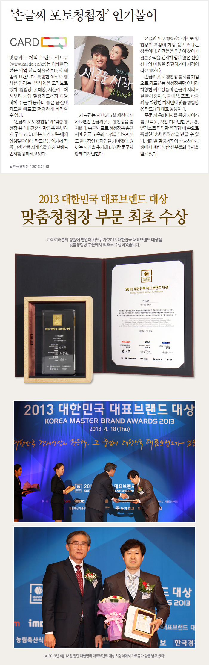 [카드큐 2013 대한민국 대표브랜드 대상] 손글씨 포토청첩장 인기몰이