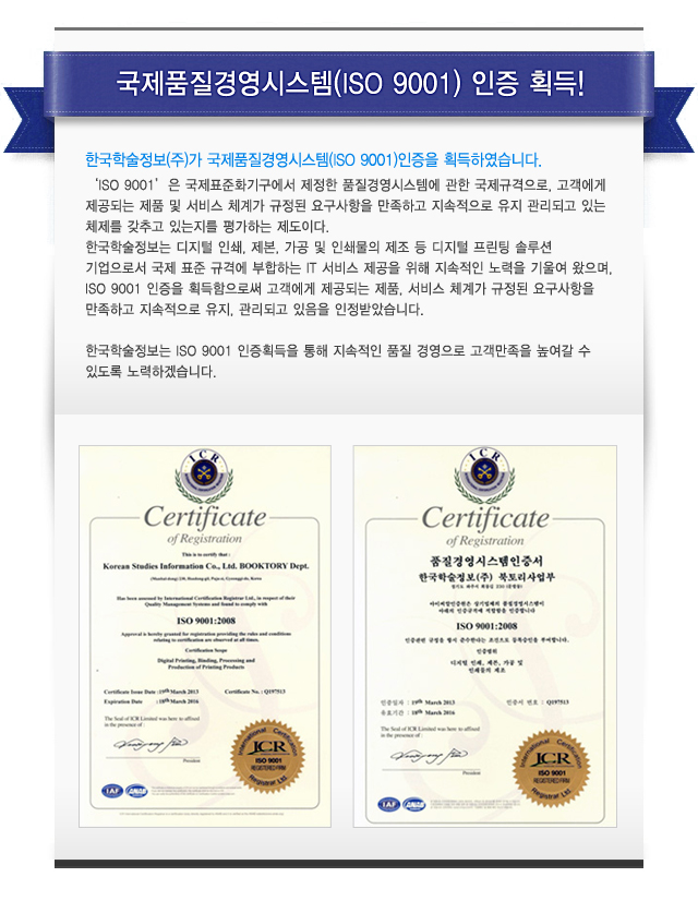 한국학술정보 ISO9001 인증 획득!